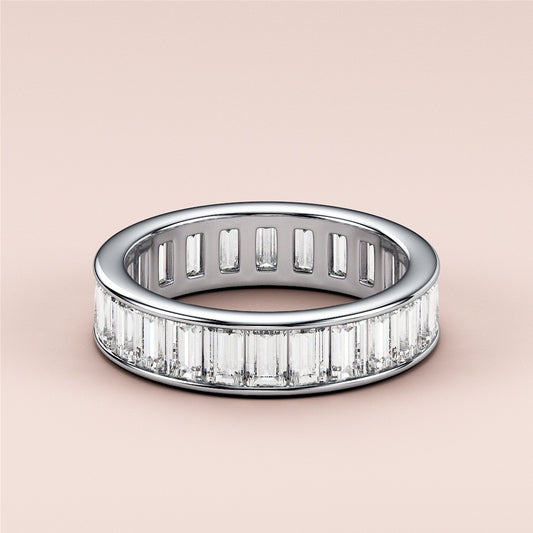 3.00 TCW Emerald Cut Moissanite Bezel Set Eternity Diamond Wedding Band