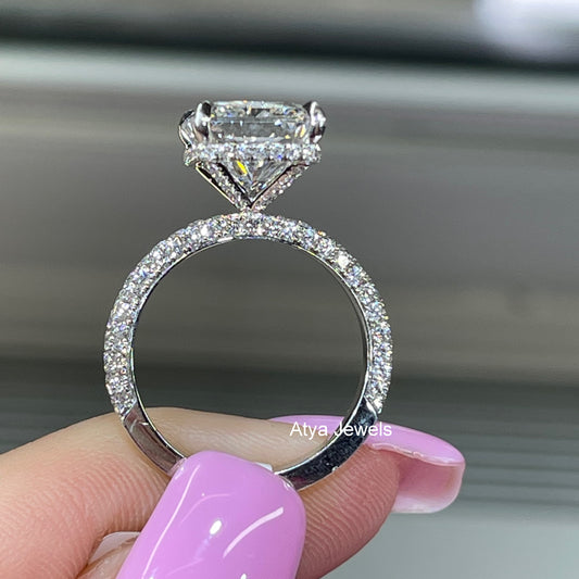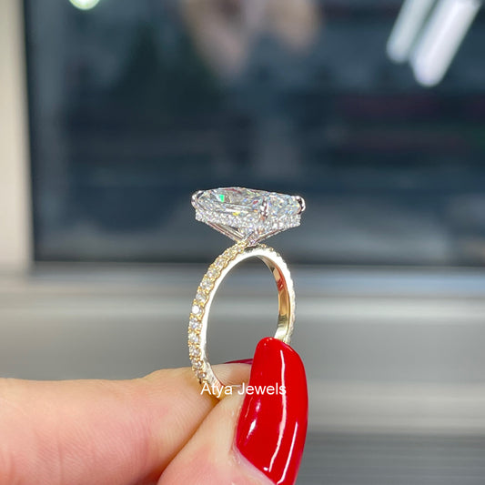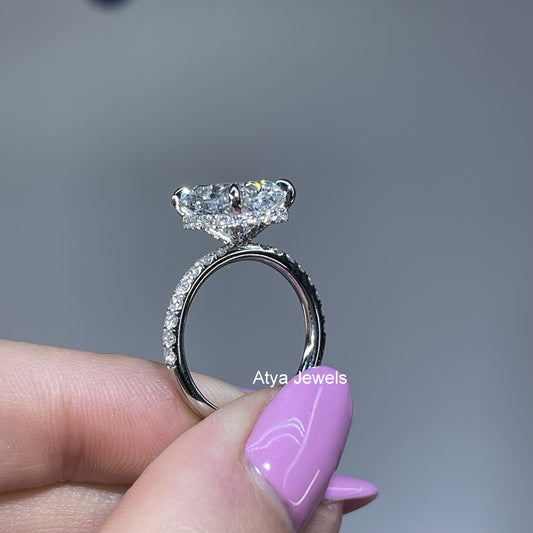 2.50 CT Elognate Cushion Cut Lab Grown Diamond Hidden Halo Engagement Ring