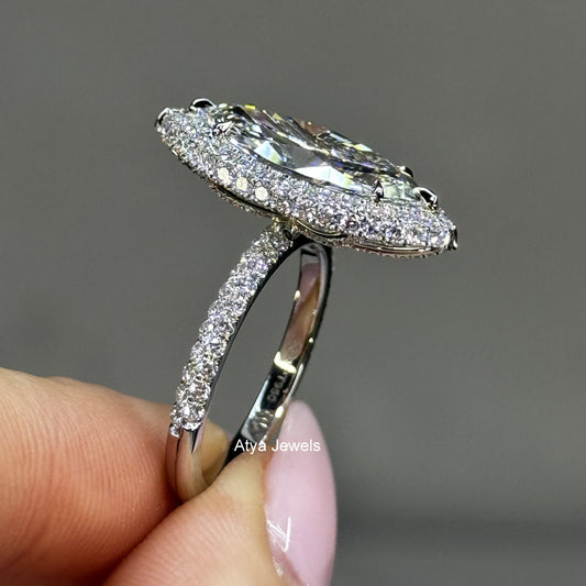 2.50 CT Marquise Cut Lab Grown Diamond Hidden Halo Engagement Ring