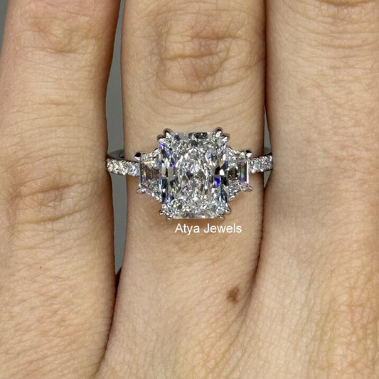 3.50 CT Radiant Cut Lab Grown Diamond Engagement Ring
