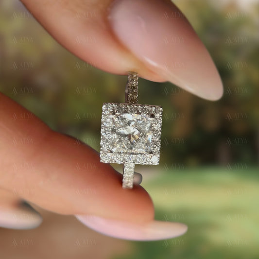 1.50 CT Princess Cut IGI Certified Lab Grownd Diamond Hidden Halo Engagement Ring For Her