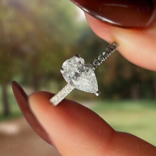 1.25 CT Pear Cut IGI Certified Lab Grown Diamond Hidden Halo Engagement Ring