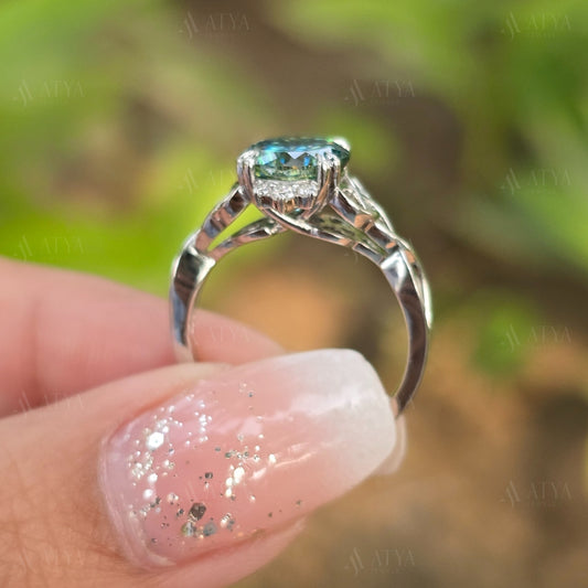 2.00 CT Portuguess Cut Cyne Blue Moissanite Diamond Engagement Ring Unique Diamond Bridal Ring For Her