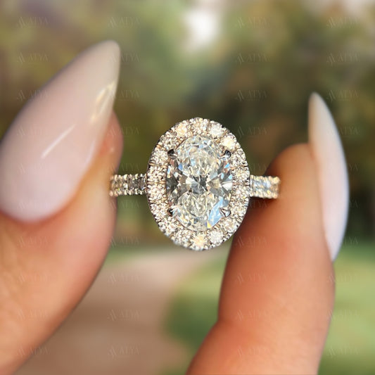 1.50 CT Oval Cut IGI Certified Lab Grown Diamond Double Hidden Halo Excellent Cut Engagement Ring