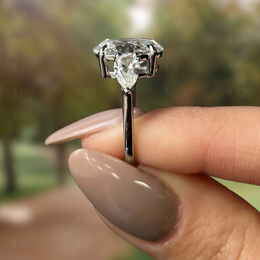 5.85 CT Oval Cut IGI Certified Lab Grown Diamond Three Stone Engagement Ring Side Pear Diamond Triology Ring