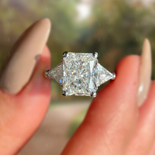 3.50 CT Radiant Cut IGI Certified Lab Grownd Diamond Three Stone Ring Side Trillions Cut Diamond Engagement Ring