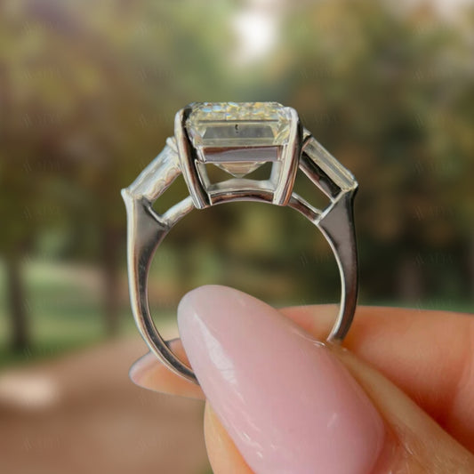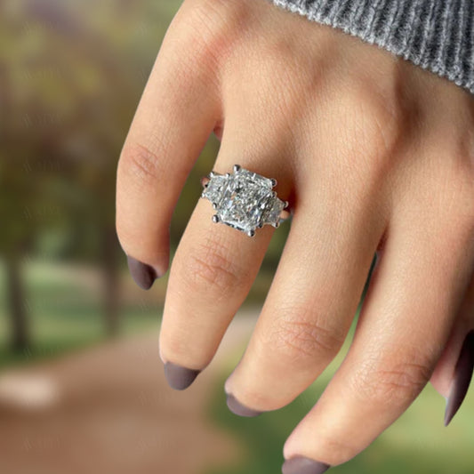 3.50 CT Radiant Cut IGI Certified Lab Grown Diamond Three Stone Engagement Ring Side Trapezoids Diamond Ring