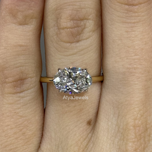 East to West 2.50 CT Oval Cut Lab Grown Diamond Hidden Halo Engagement Ring