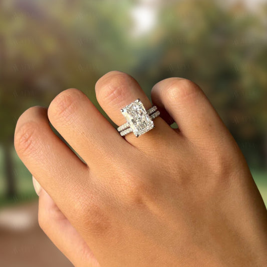 4.50 CT IGI Certified Radiant Cut Lab Grown Diamond Bridal Ring Set Hidden Halo Ring With Matching Wedding Band