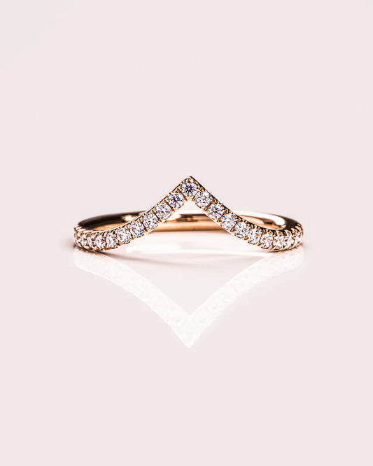 V Shape Unique Matching Band Gold Lab Diamond Engagement Wedding Band