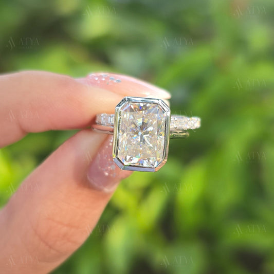 4.00 CT Radiant Cut Moissanite Bezel Set Engagement Bridal Set Ring for Women Pave Set Wedding Band Ring Gift for Her