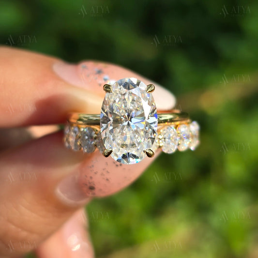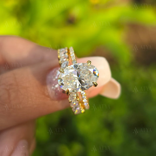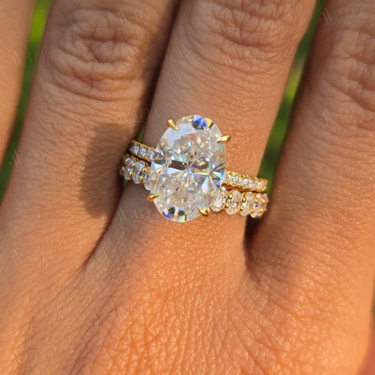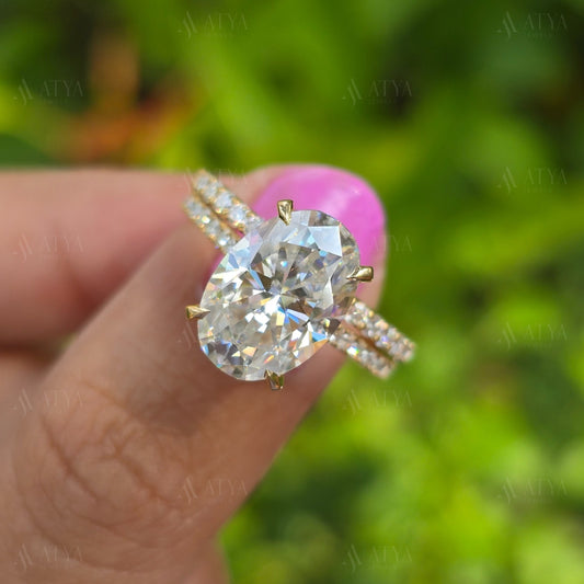 4.00 CT Oval Moissanite Wedding Bridal Set Ring Oval Cut Engagement Ring Set with Eternity Diamond Matching Band Hidden Halo Ring