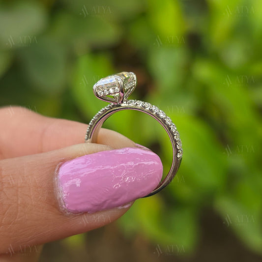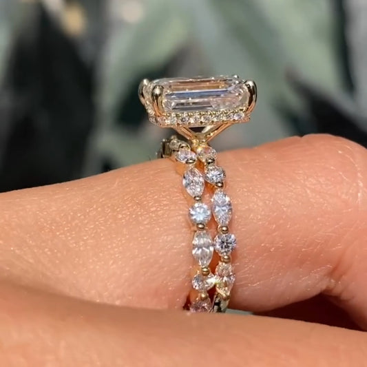 3.50 CT Emerald Cut Hidden Halo Moissanite Engagement Bridal Ring Set