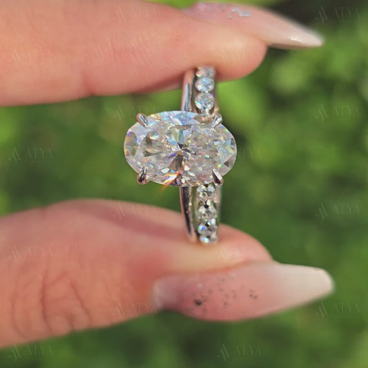3 CT Oval Cut Moissanite Engagement Ring 14K Solid Gold Bridal Ring Set With Oval Half Wedding Set Promise Ring