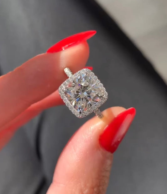 3.00 CT Cushion Cut Moissanite Diamond Halo Bridal Wedding Ring Set