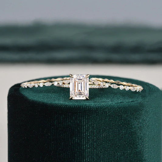 2.50 CT Emerald Cut Moissanite Bridal Ring Set