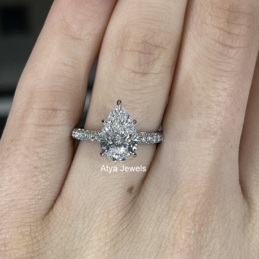 2.50 CT Pear Cut Moissanite Engagement Ring