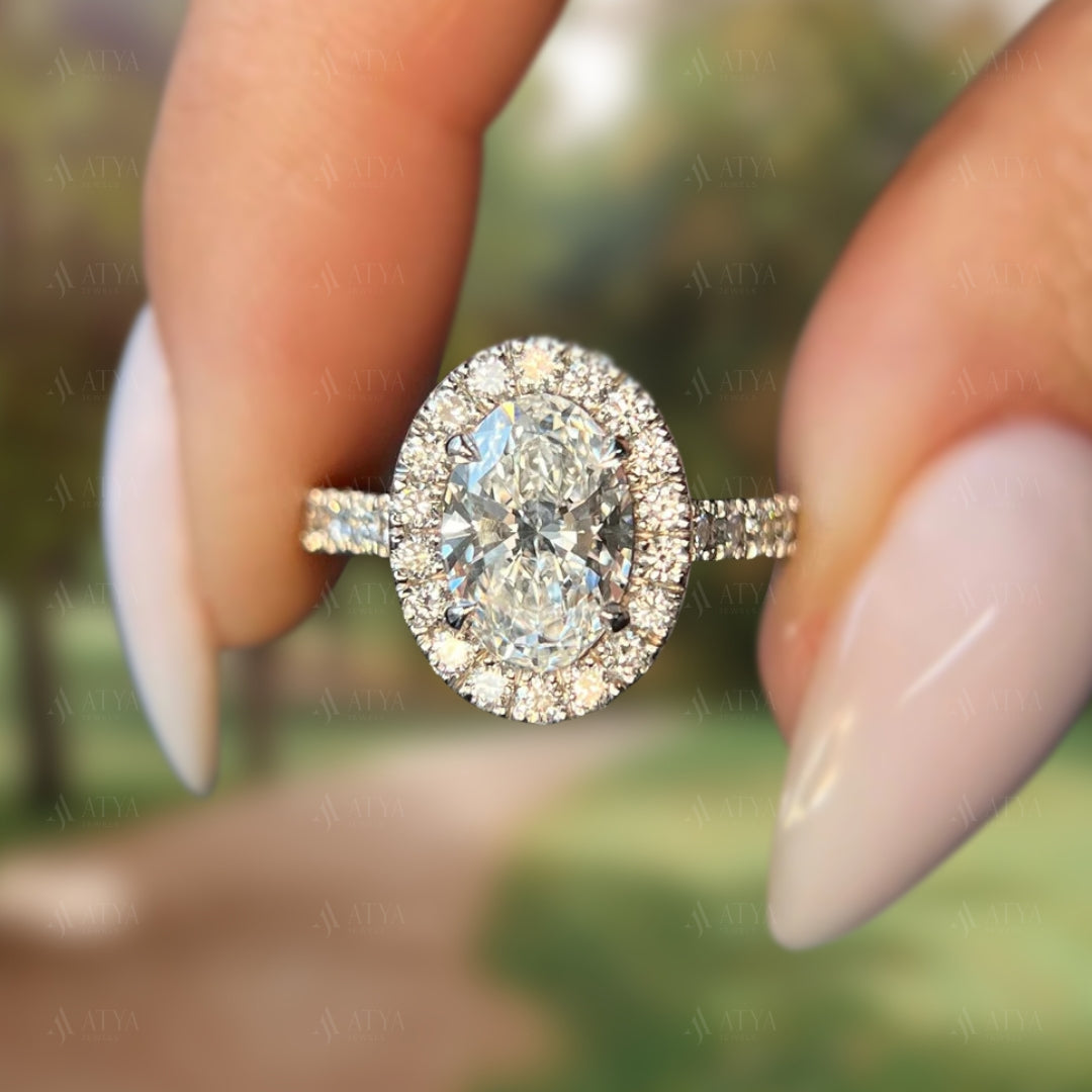 1.50 CT Oval Cut IGI Certified Lab Grown Diamond Double Hidden Halo Excellent Cut Engagement Ring