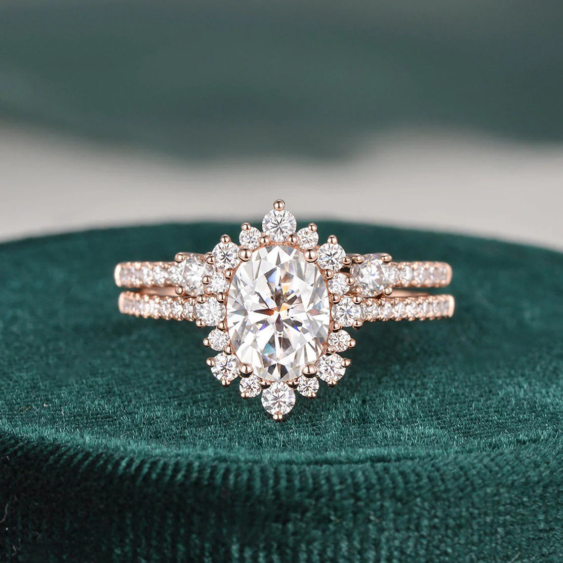2.00 CT Oval Cut Double Halo Moissanite Bridal Ring Set