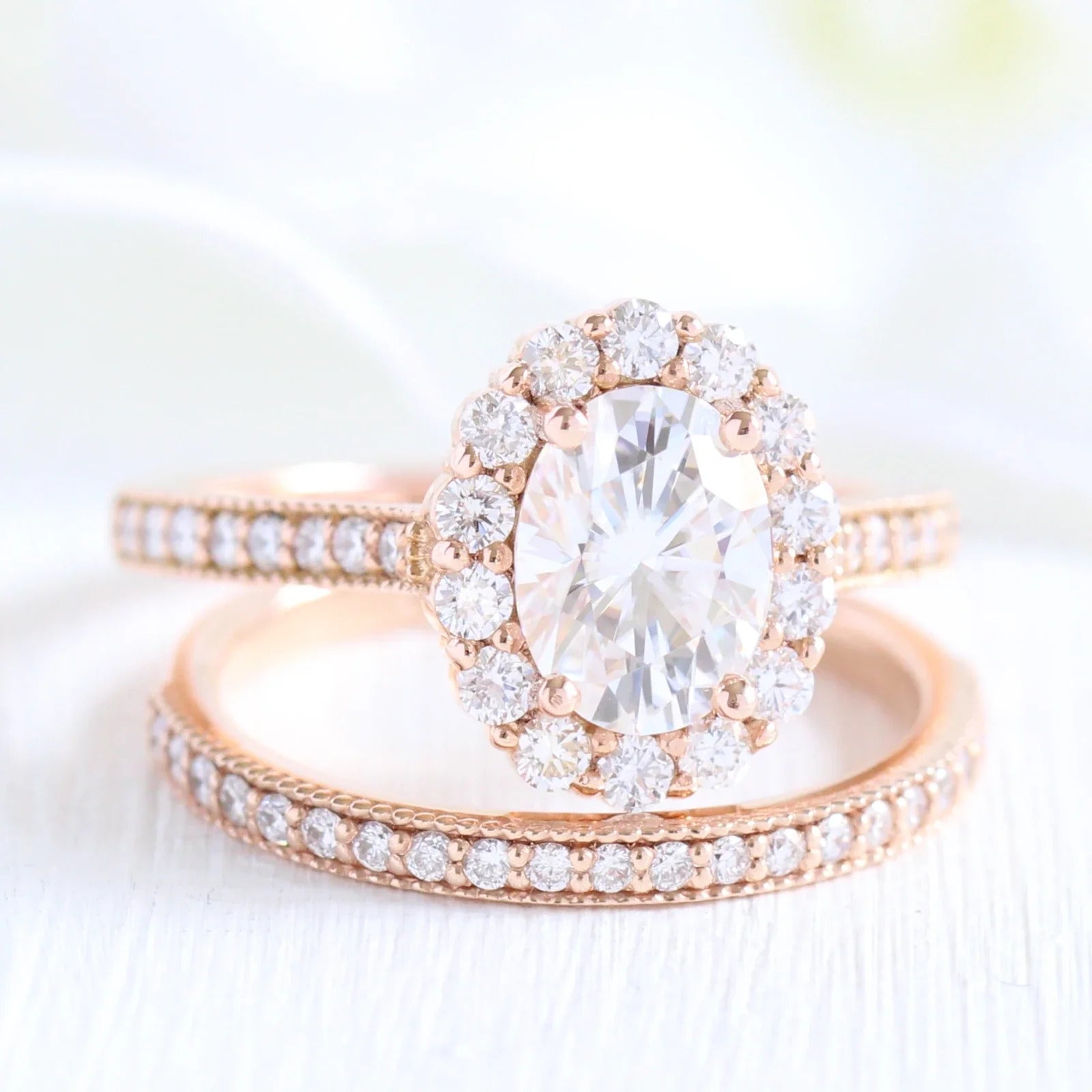 2.00 CT Oval Cut Moissanite Luna Halo Bridal Wedding Ring Set