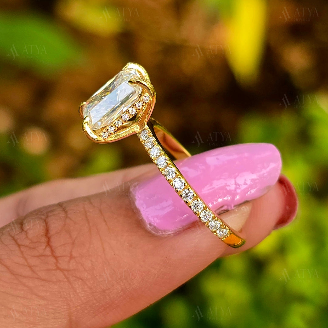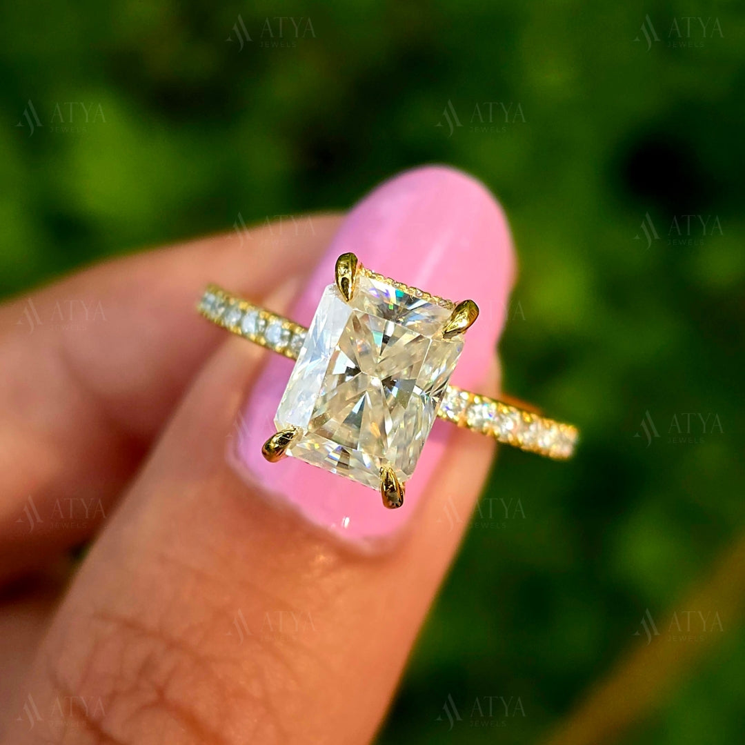 2.00 CT Radiant Cut Moissanite Hidden Halo Engagement Ring Half-Eternity Diamond Ring Gift Ring For Her