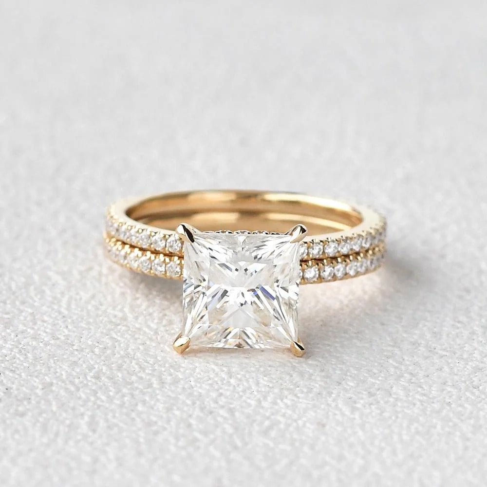 2.00 CT Princess Cut Moissanite Hidden Halo Engagement Ring with Full Eternity Wedding Band