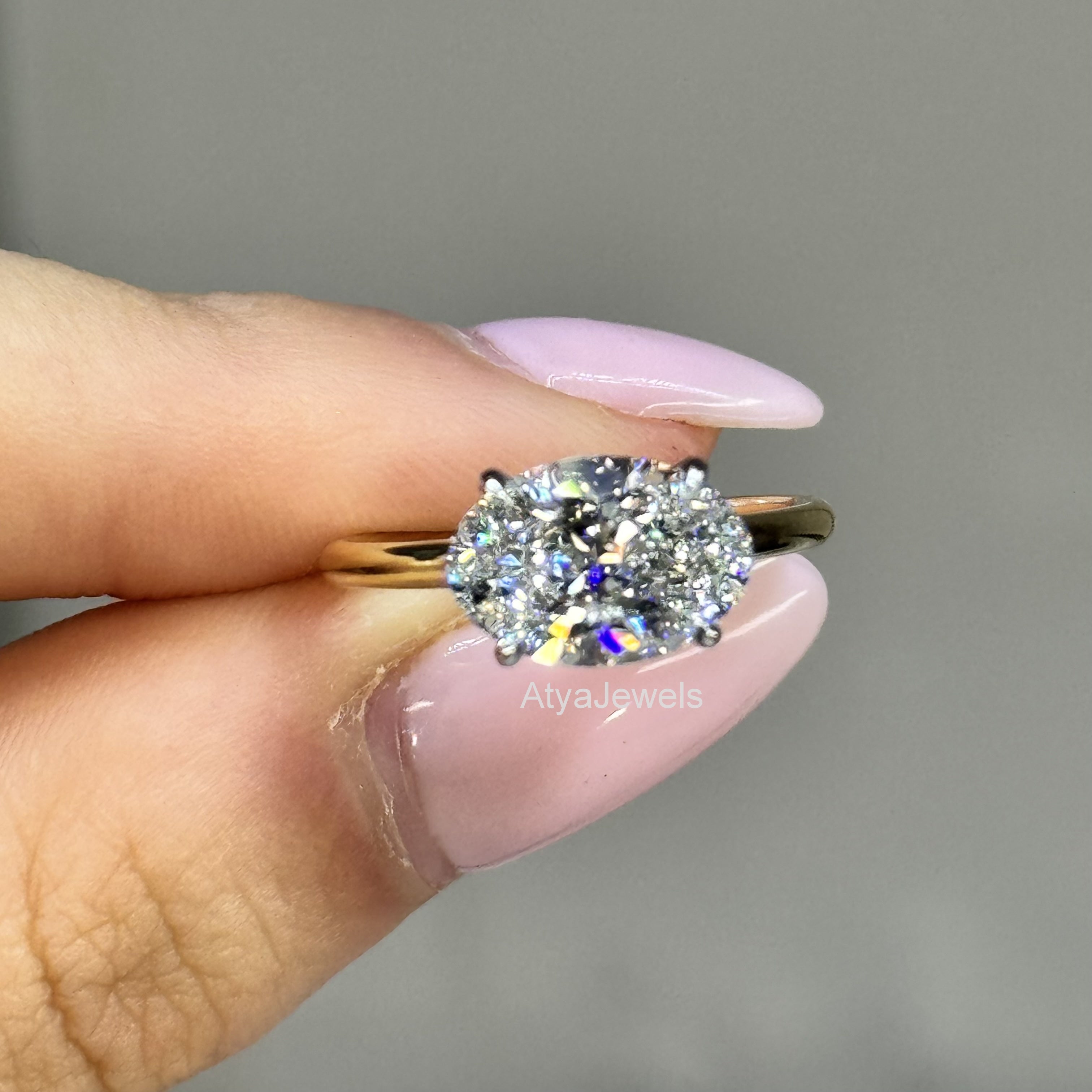 East to West 2.50 CT Oval Cut Lab Grown Diamond Hidden Halo Engagement Ring