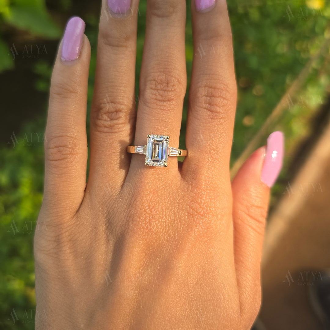 3.00 CT Emerald Cut Triology Engagement Ring Three Stone Moissanite Wedding Ring Promise Ring
