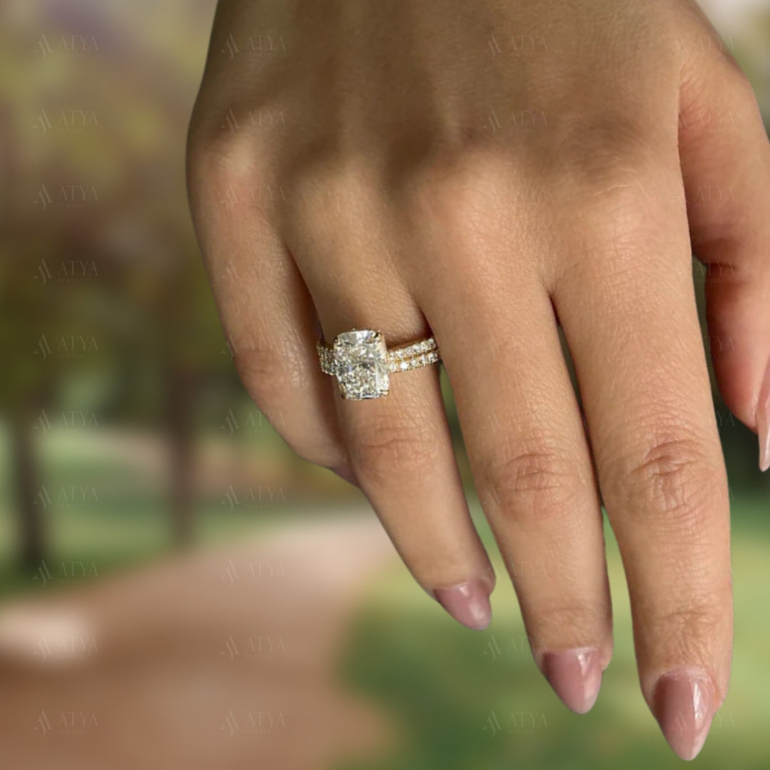 3.00 Elongated Cushion Cut IGI Certified Lab Grown Diamond Hidden Halo Bridal Ring Set | Matching Band
