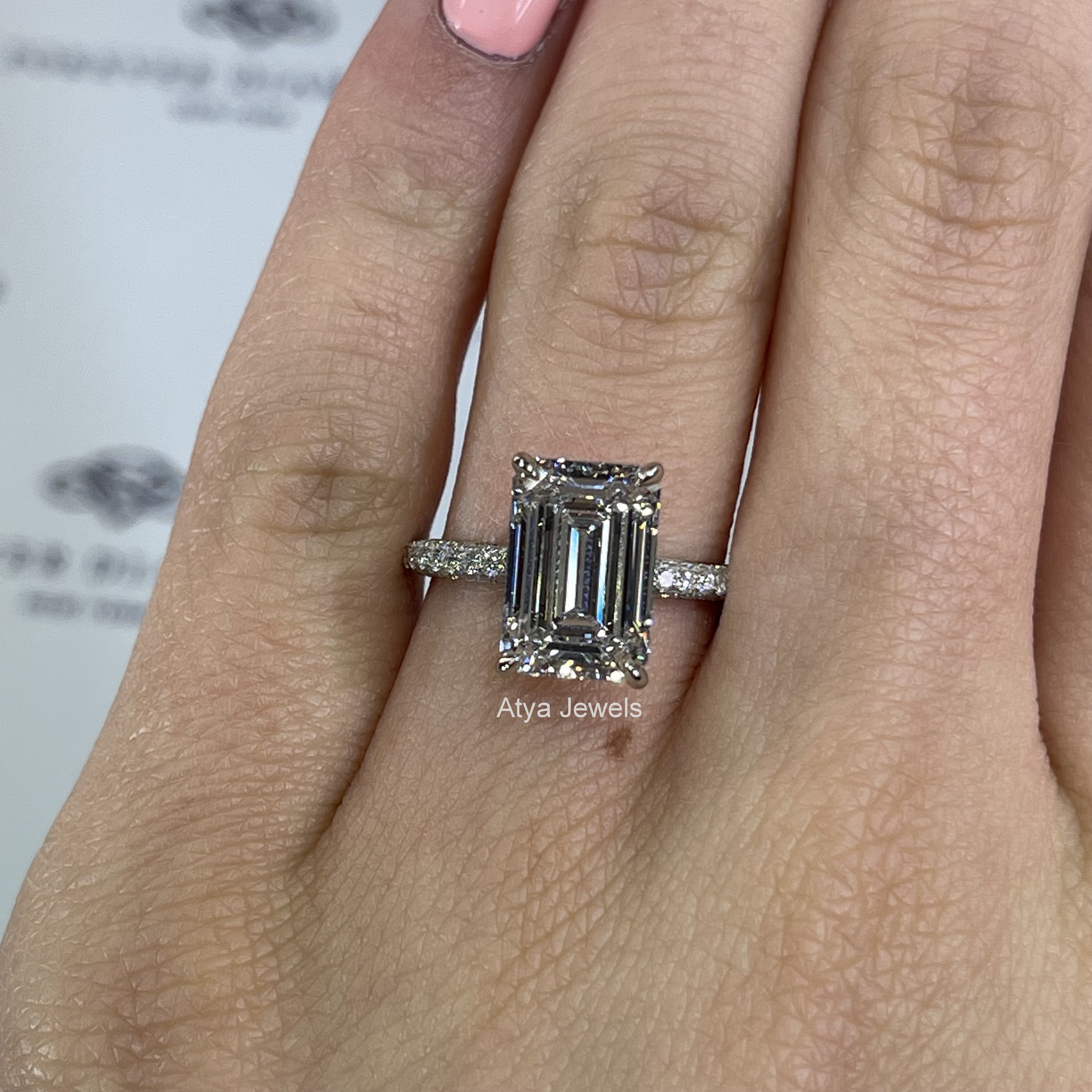 3.50 CT Emerald Cut Lab Grown Diamond Engagement Ring