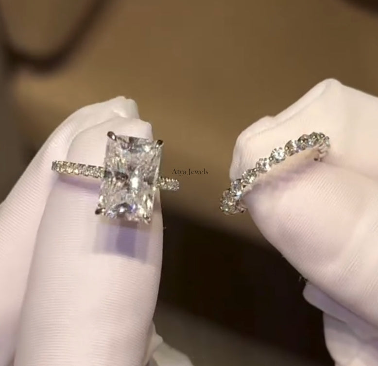 2.50 CT Radiant Cut Moissanite Bridal Wedding Ring Set