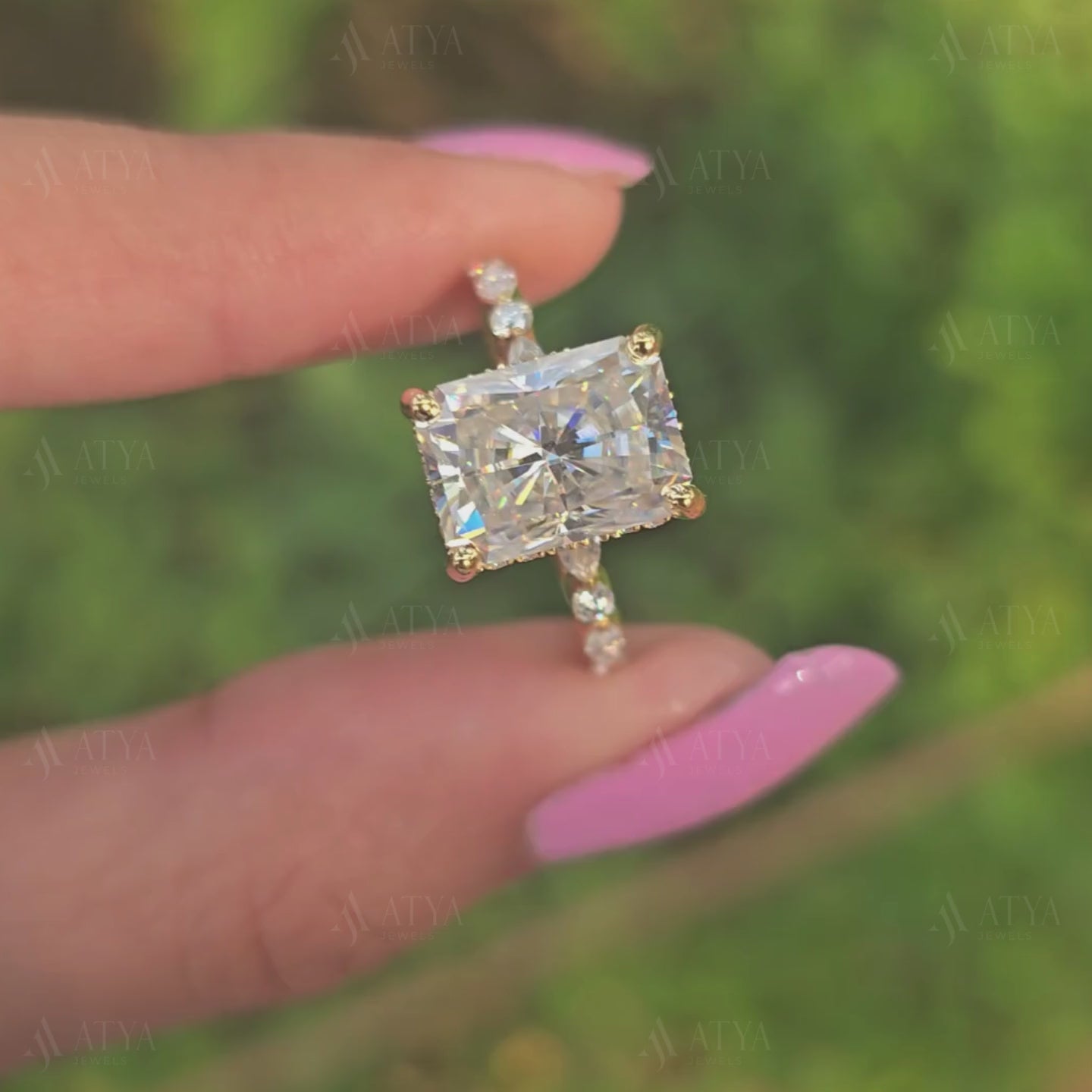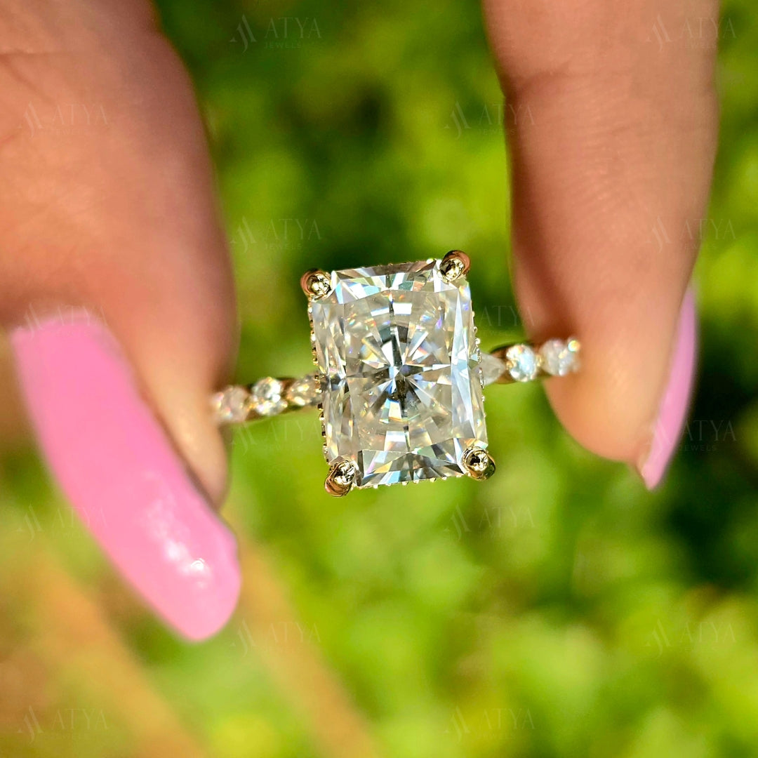 3.50 CT Radiant Cut Moissanite Hidden Halo Engagement Ring Wedding Ring Anniversary Ring For Women
