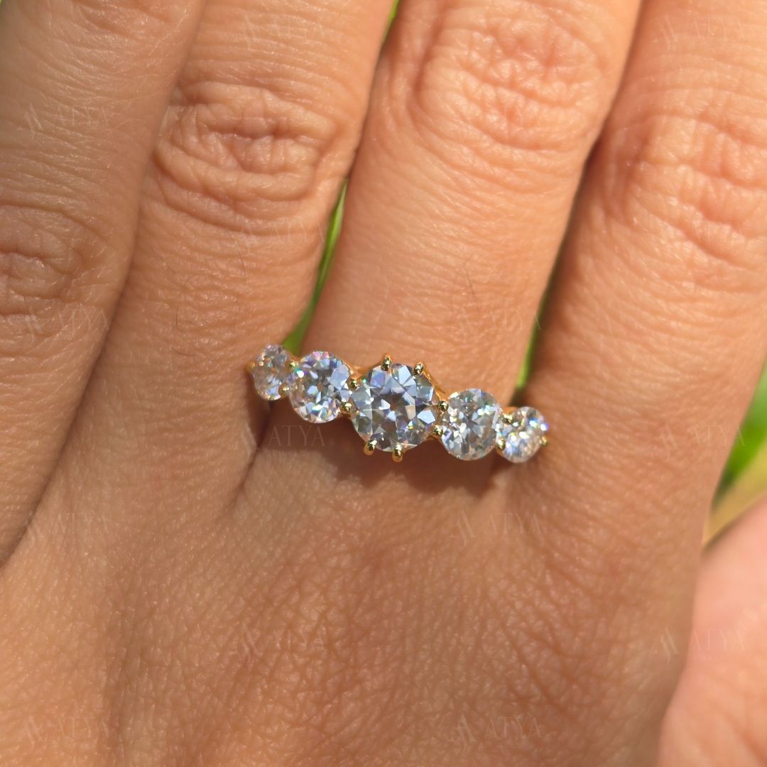3 TCW Old Europian Cut Round Moissanite Engagement Ring Vintage Wedding Ring 14K Yellow Gold Ring Five Stone Ring Classic Personalised Ring