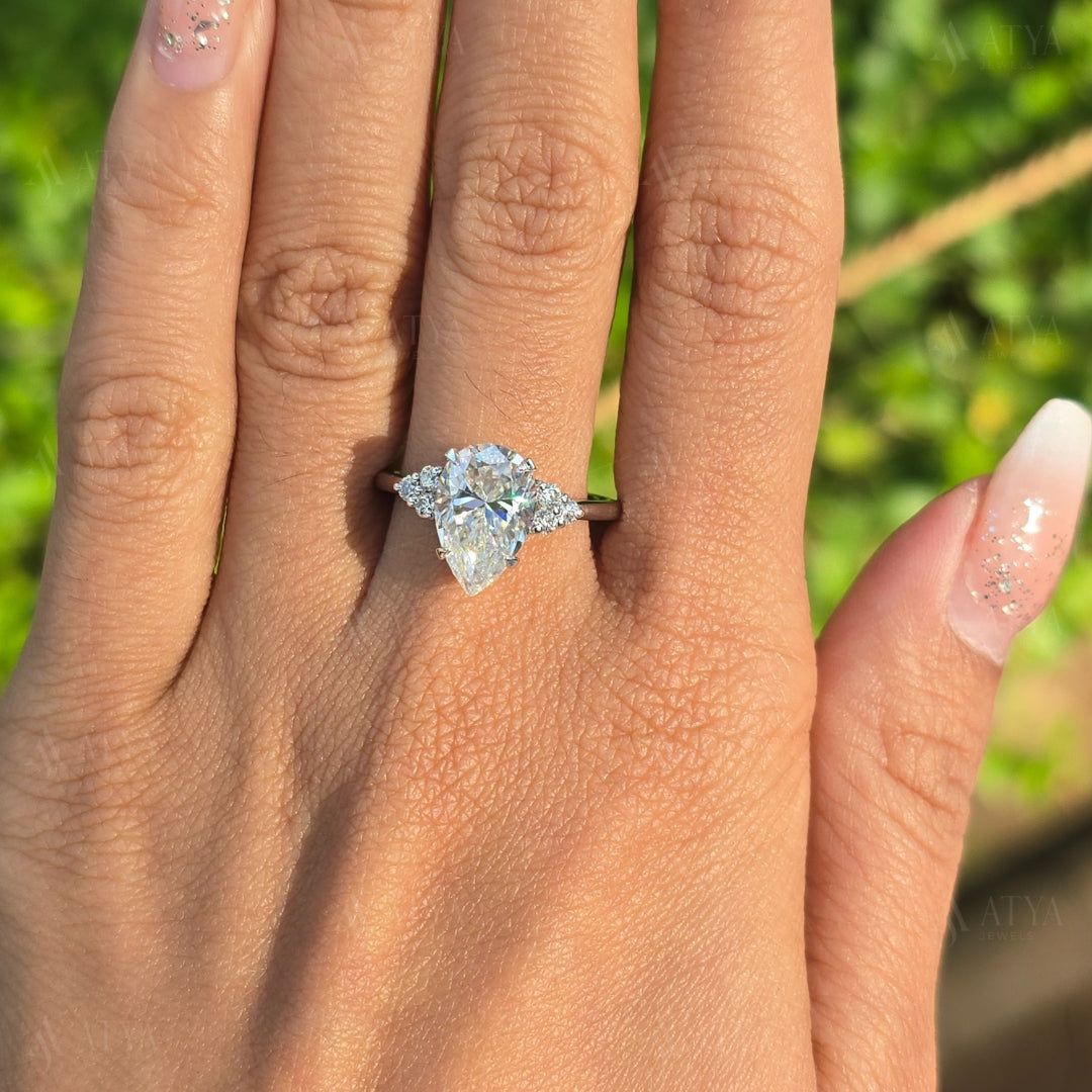 4.00 CT Pear Cut Moissanite Halo Engagement Ring Moissanite Wedding Ring for Her Anniversary Gift Moissanite Cluster Ring