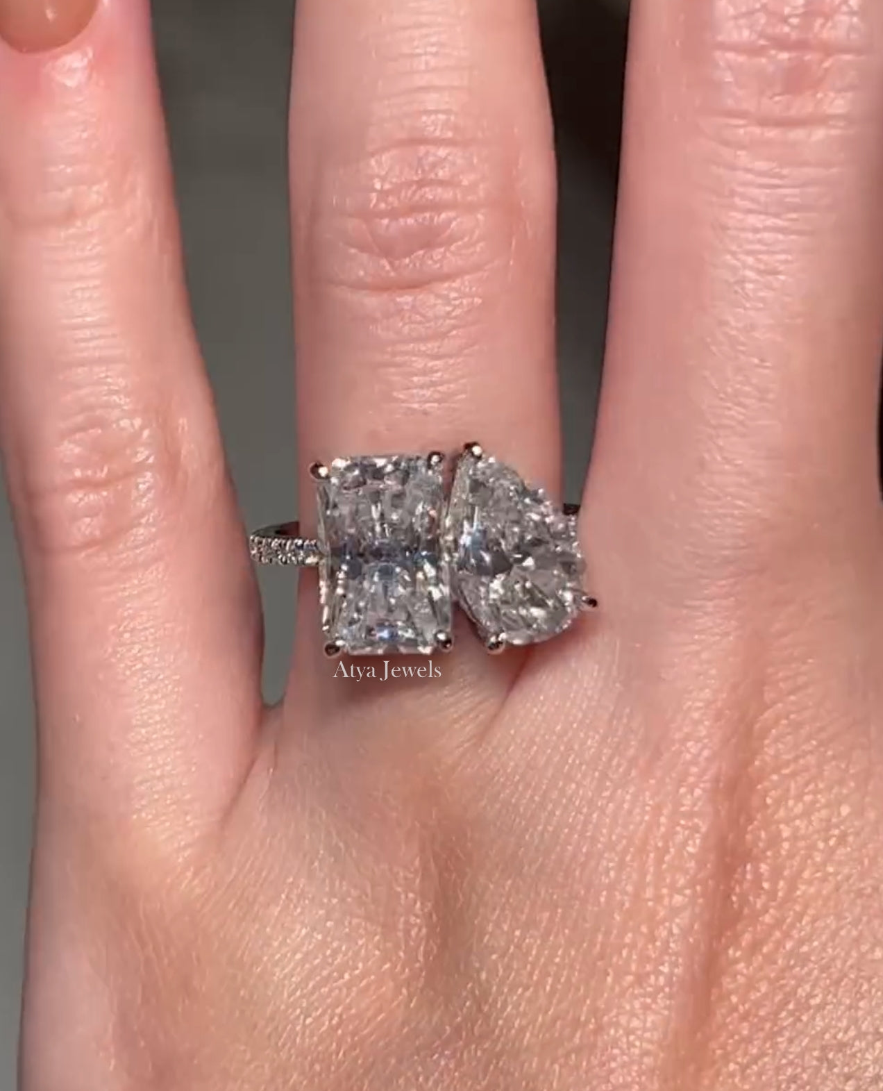 5.50 TCW Radiant And Pear Cut Moissanite Engagement Ring
