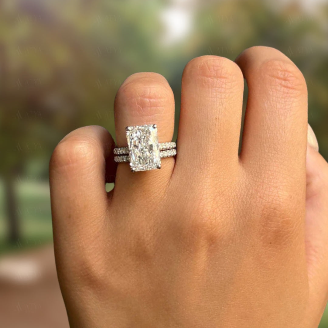 4.50 CT IGI Certified Radiant Cut Lab Grown Diamond Bridal Ring Set Hidden Halo Ring With Matching Wedding Band