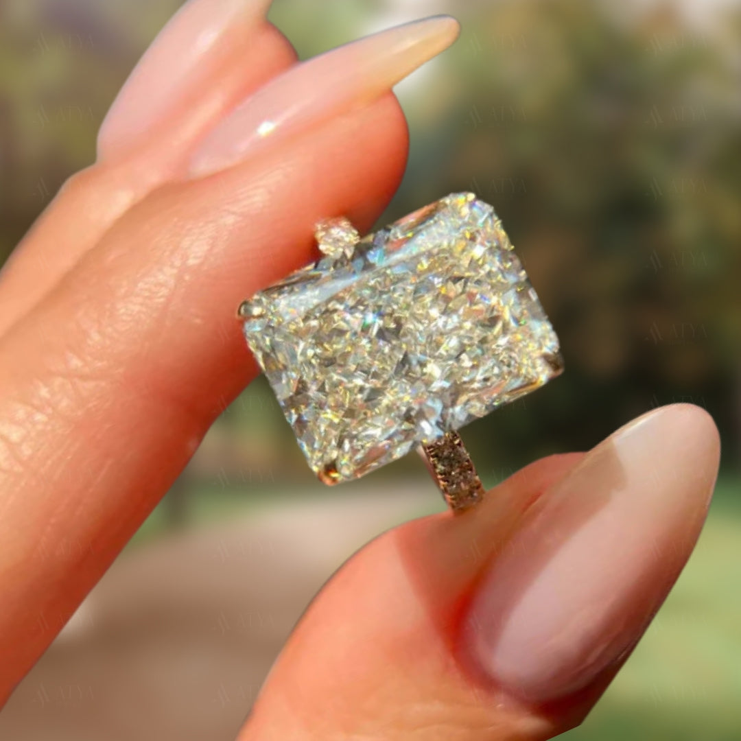 4.50 CT Radiant Cut IGI Certified Lab Grown Diamond Engagement Ring Hidden Halo Side Round Diamonds
