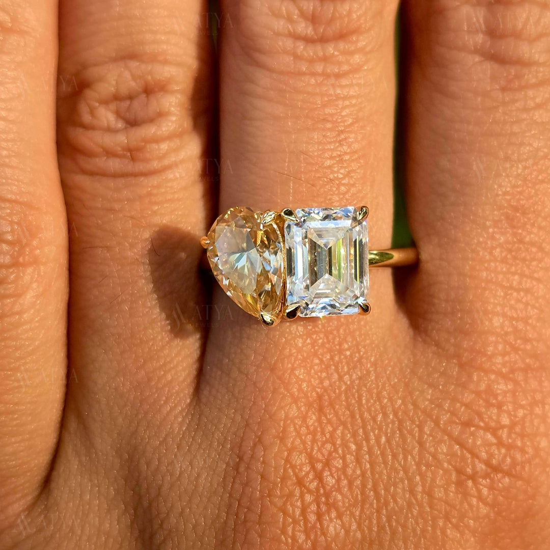 5.00 TCW Pear & Emerald Cut Toi Et Moi Moissanite Engagement Ring Toi Et Moi Promise Ring For Her