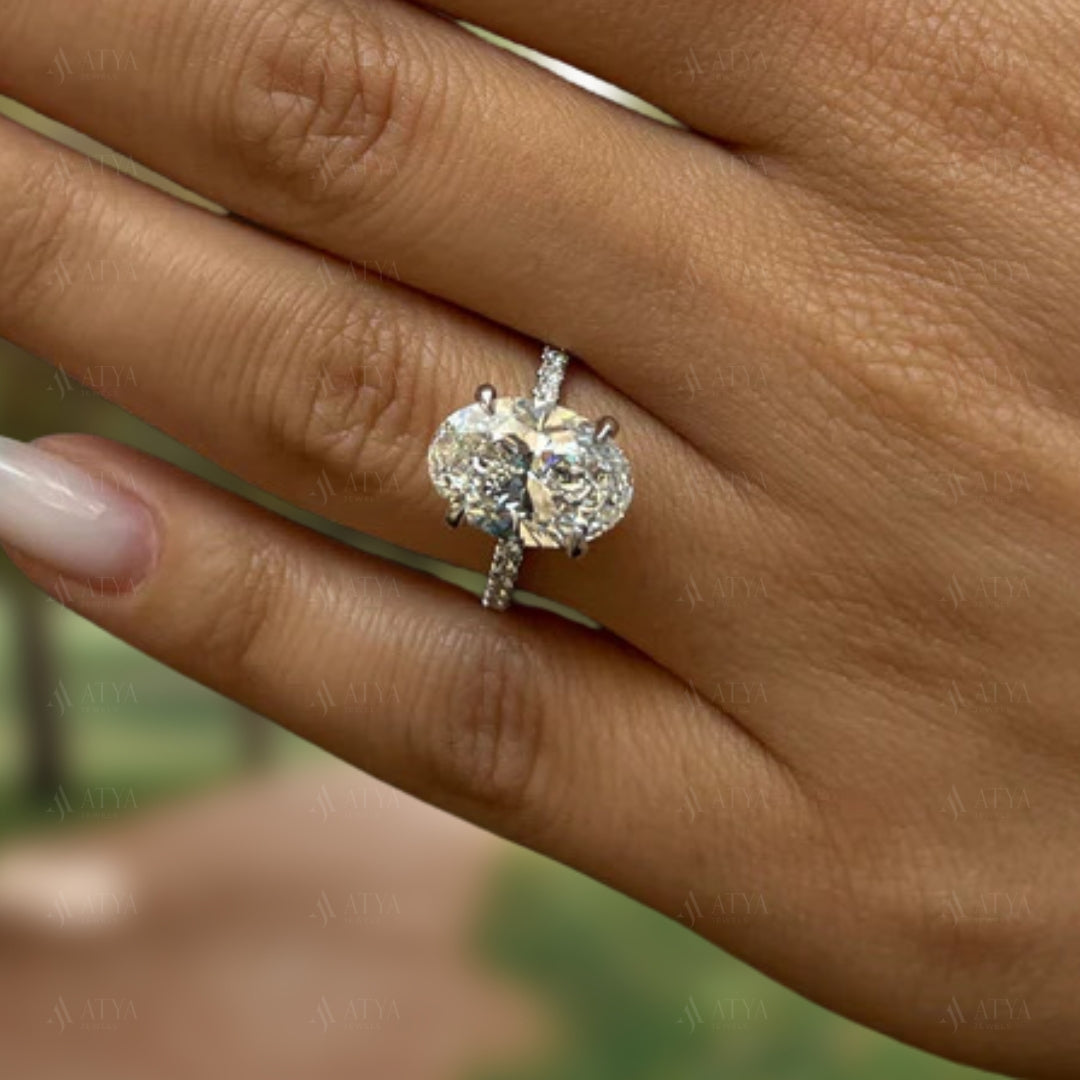 Excellent Oval Cut 3.50 CT IGI Certified Lab Grown Diamond Hidden Halo Engagement & Wedding Ring