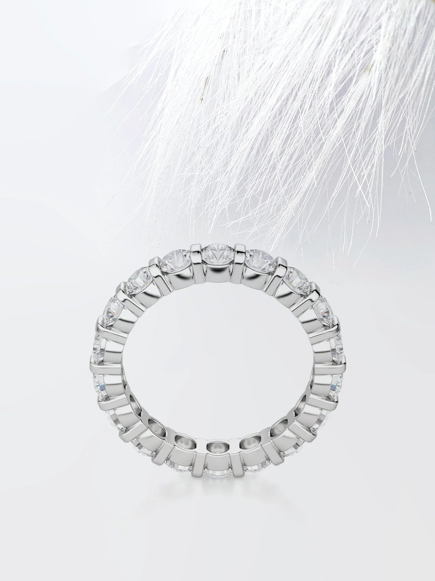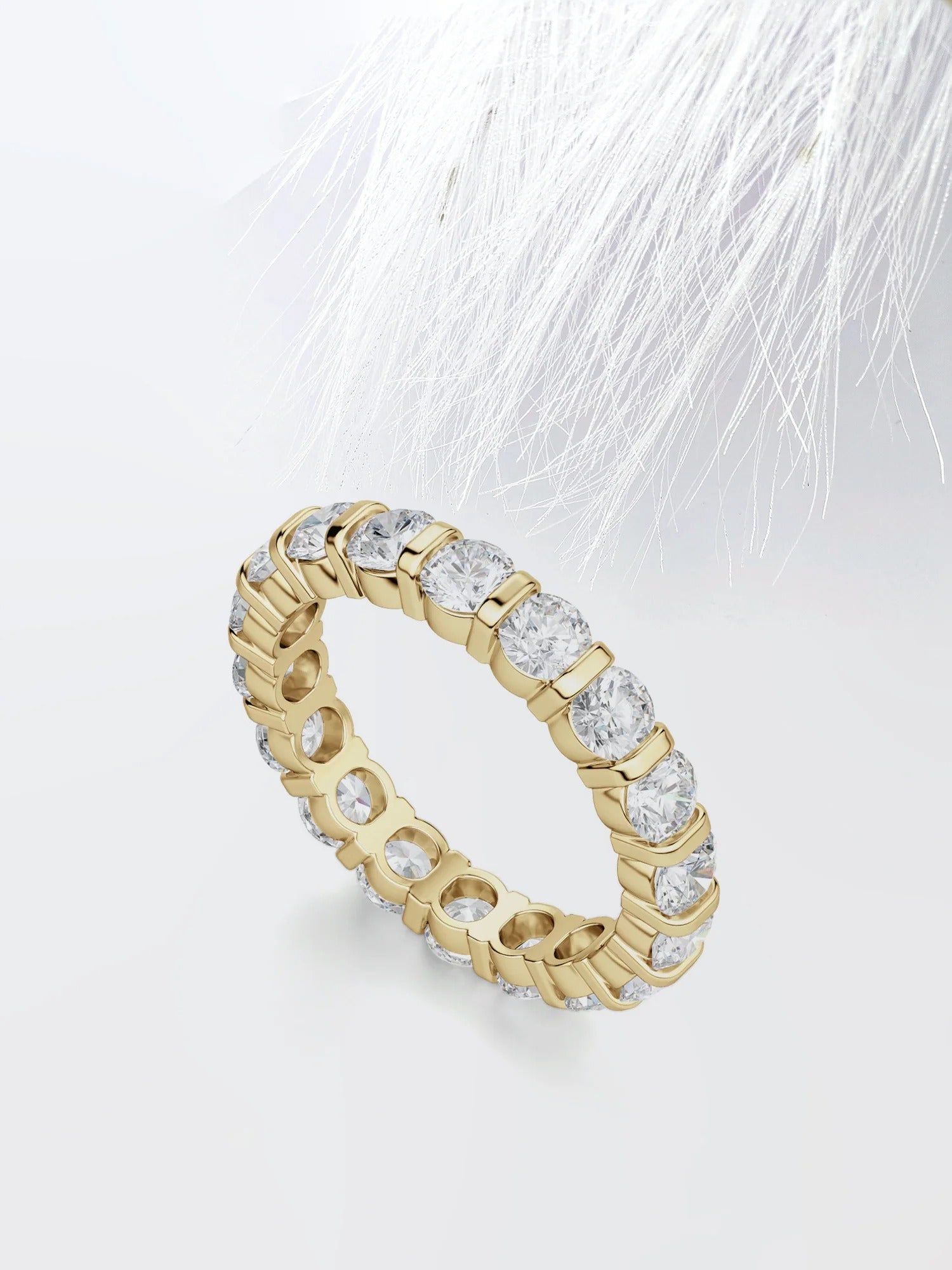 Celebrate your love in style with the 5.00 TCW Gold Diamond Wedding Band for Her. This striking gold diamond wedding band showcases the perfect balance of sophistication and glamour. Featuring dazzling round cut moissanite stones securely held in a modern bar setting, this band exudes elegance and confidence for the modern bride.